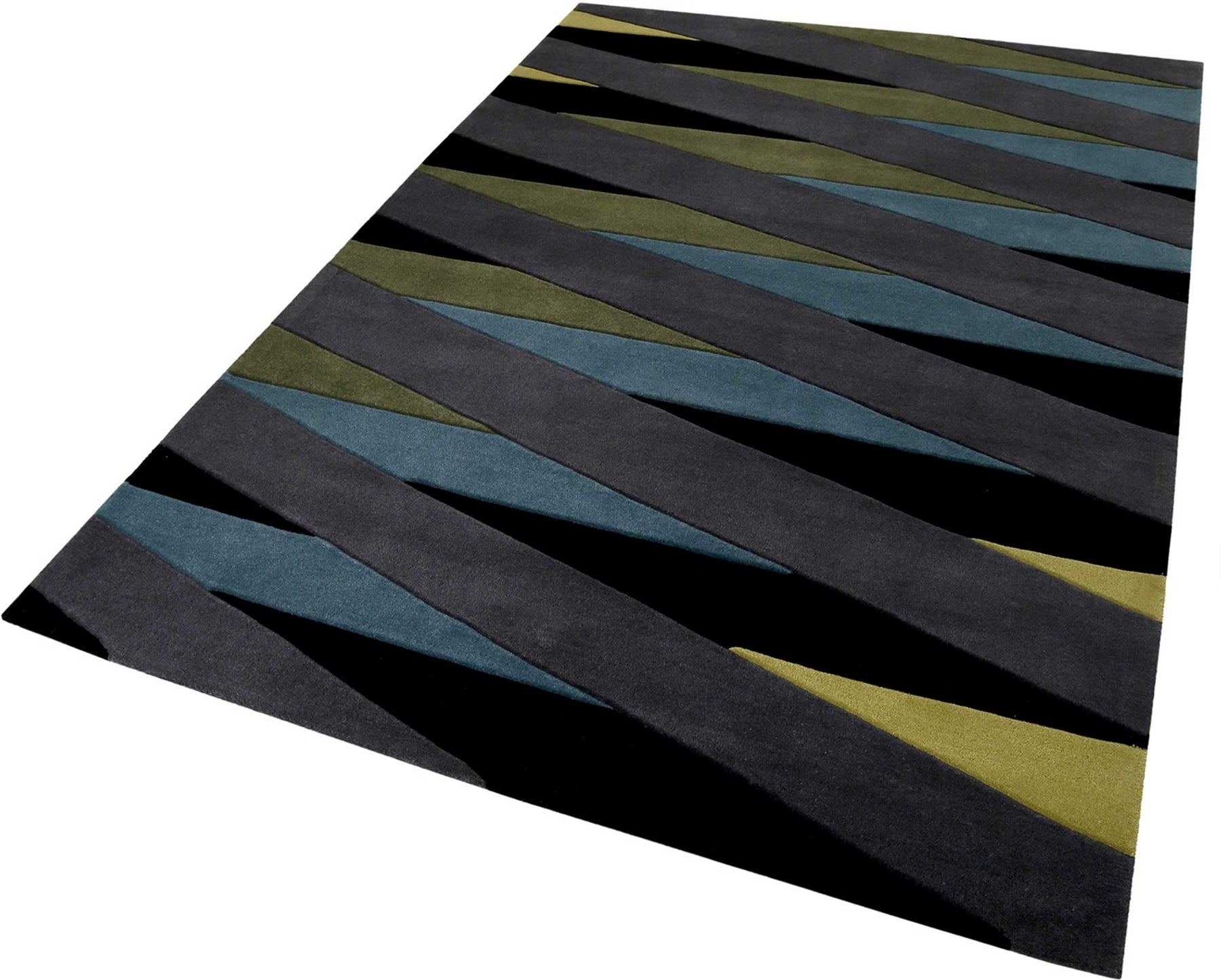 Tapis Esprit gris anthracite bleu jaune en laine "Lamella"