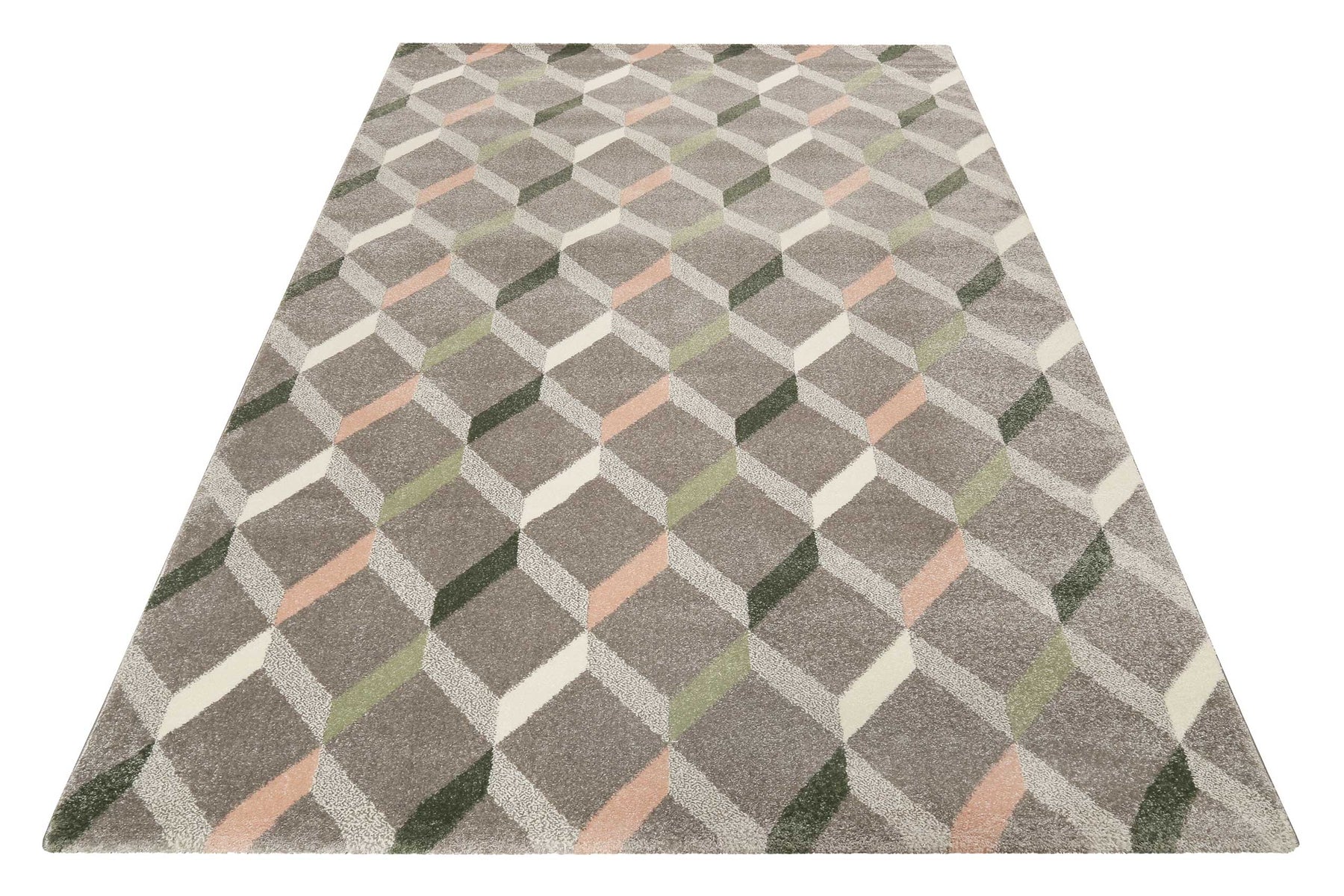 Tapis Esprit gris vert rose à poil ras "Rica"