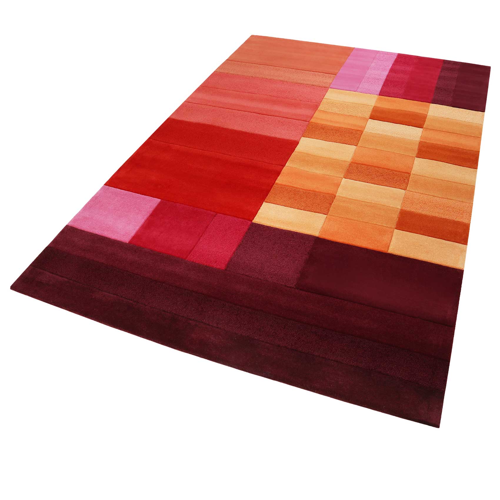 Tapis Esprit rouge orange rose vif en laine "Various Box"