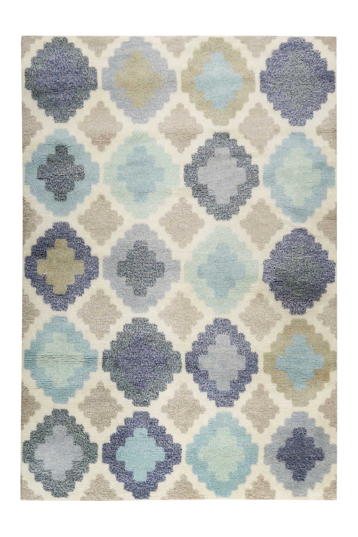 Tapis Esprit turquoise bleu beige tissé à la main en laine "Nilas Haute"