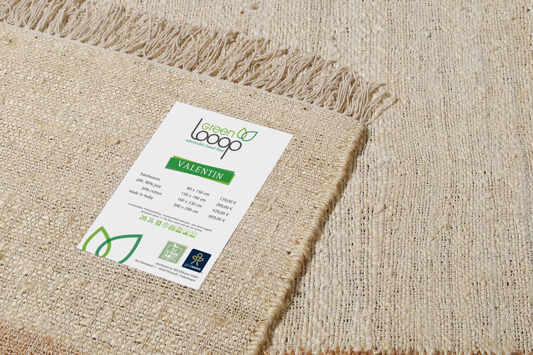 Le tapis à poils courts « Valentin » de Green Looop allie design responsable et qualité. Fabriqué en jute et en coton, ce tapis dégage une ambiance agréable et s’intègre harmonieusement dans de nombreux intérieurs. Que ce soit dans le salon, la chambre ou le bureau, Valentin crée une atmosphère chaleureuse et accueillante. Certifié GoodWeave, ce tapis est un excellent choix pour ceux qui privilégient durabilité et respect de l’environnement. En optant pour des matériaux naturels tissés à la main, vous choisissez un accessoire tendance, aussi esthétique qu’éthique.