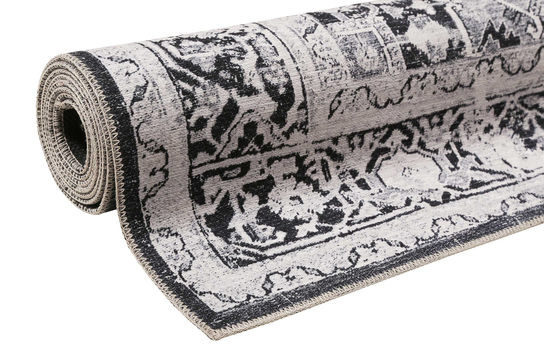 Ce magnifique tapis en chenille de coton ajoute une touche de style à votre maison. Motifs rétro et style vintage, avec des tons de gris frais - voilà un accroche-regard extravagant. Sans substances nocives, résistant, facile à entretenir et certifié conforme à la norme STANDARD 100 by OEKO-TEX. Sans peluches et ourlé tout autour. Nous recommandons l'utilisation d'un sous-tapis antidérapant.