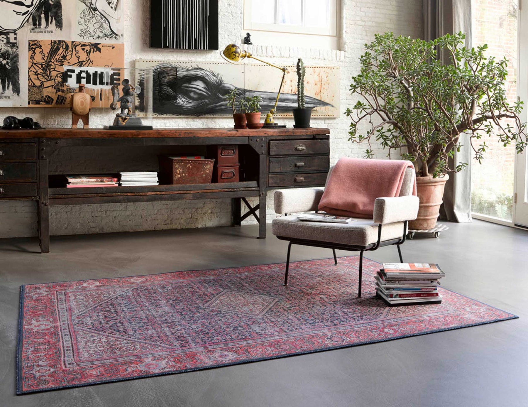 Tapis vintage rouge bleu "Flashback" WECONhome