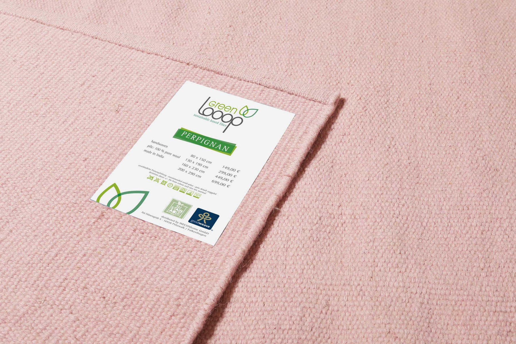 Le tapis en laine tissée à la main "Perpignan" de Green Looop séduit par sa qualité de fabrication et son élégance. Naturel dans son design et particulièrement agréable au toucher, Perpignan s'intègre presque parfaitement dans n'importe quelle pièce. Fabriqué à cent pour cent en laine et certifié par le label GoodWeave, Perpignan représente un processus de fabrication dans des conditions sociales et écologiques équitables. Perpignan est un tapis intemporel qui enchante de nombreux passionnés de décoration avec son charme. Il ne devrait manquer dans aucun foyer qui accorde de l'importance à une décoration intérieure naturelle et intemporelle. "Perpignan" peut également être combiné avec des planchers chauffants. Pour une meilleure adhérence, nous recommandons un sous-tapis antidérapant.