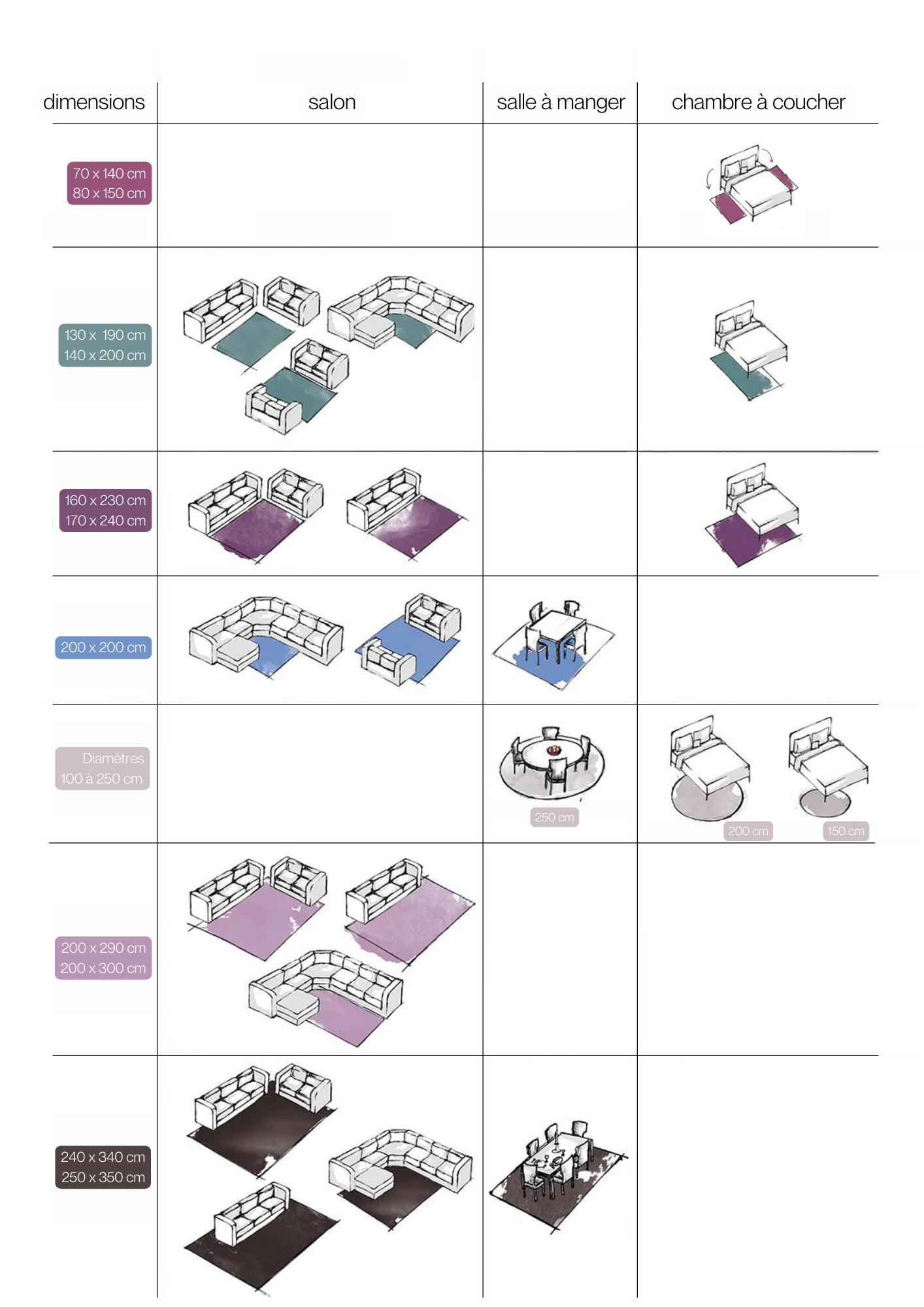 - Tailles de tapis selon la pièce – un aperçu
